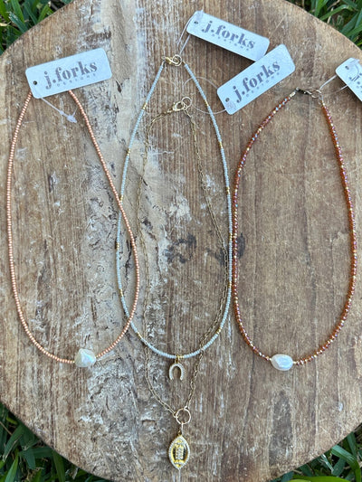 J.Forks Designs offers a wide variety of handmade jewelry. From necklaces and earrings to bracelets and rings, we have designs that embolden any style. We are best known for high-quality gemstones ranging from North American Turquoise, Coral, Freshwater Pearls, and more, in-store and online at our Boerne Boutique!